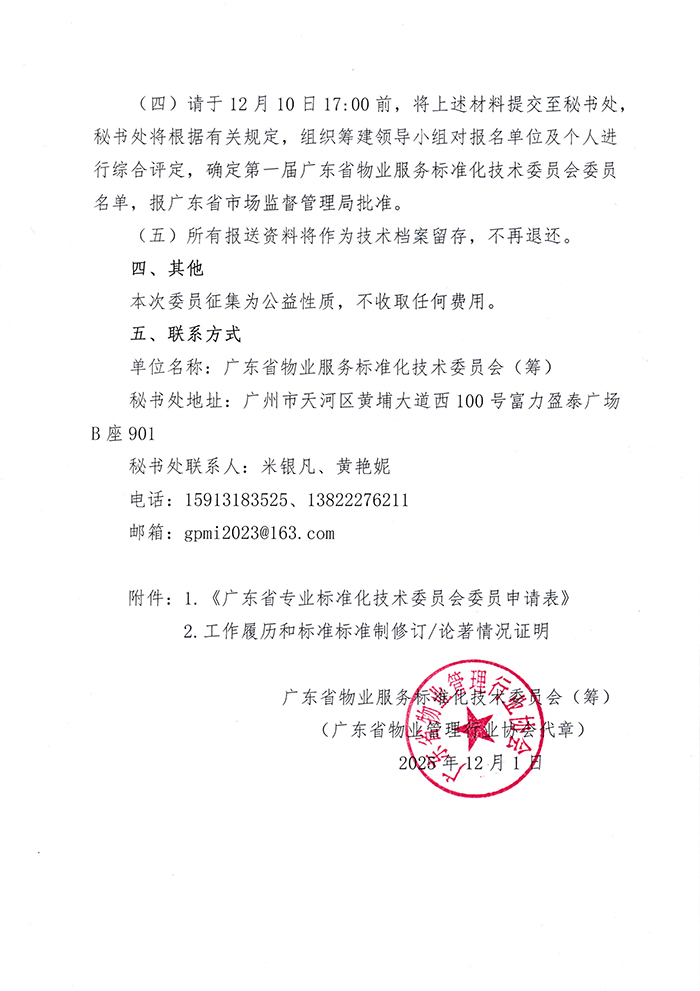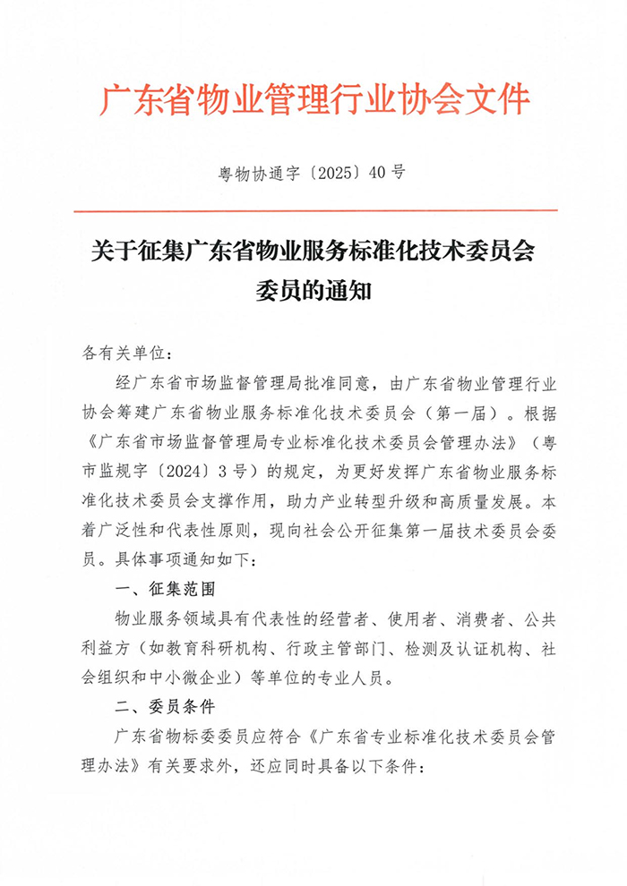 关于征集广东省物业服务标准化技术委员会委员的通知