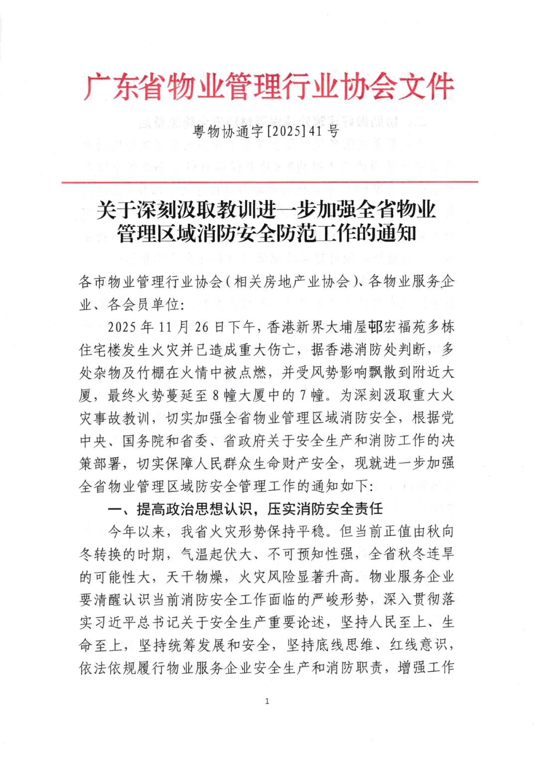 关于深刻汲取教训进一步加强全省物业管理区域消防安全防范工作的通知