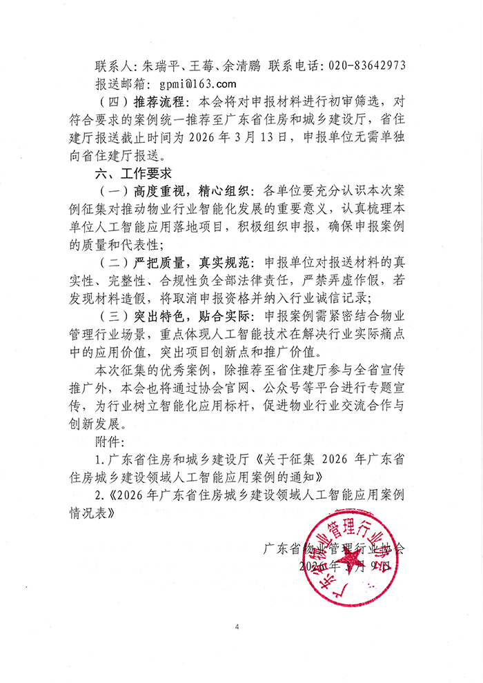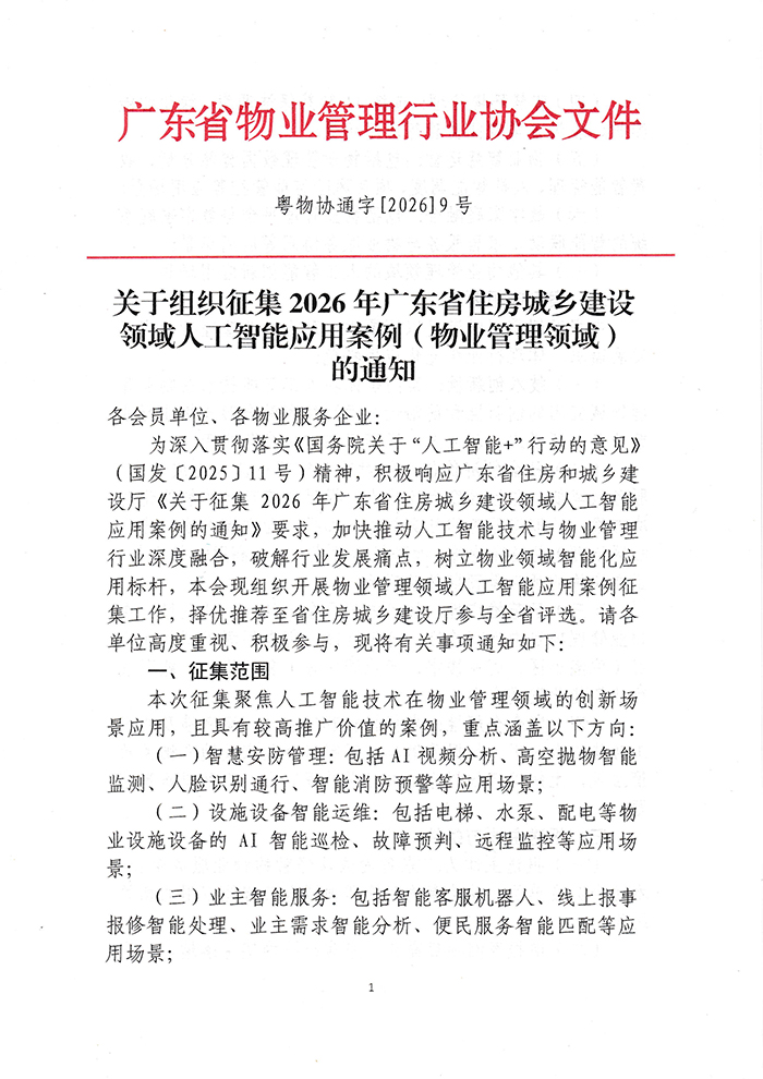 通知及附件下载:关于组织征集2026年广东省住房城乡建设领域人工智能应用案例(物业管理领域)的通知