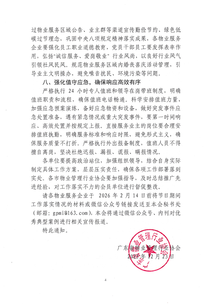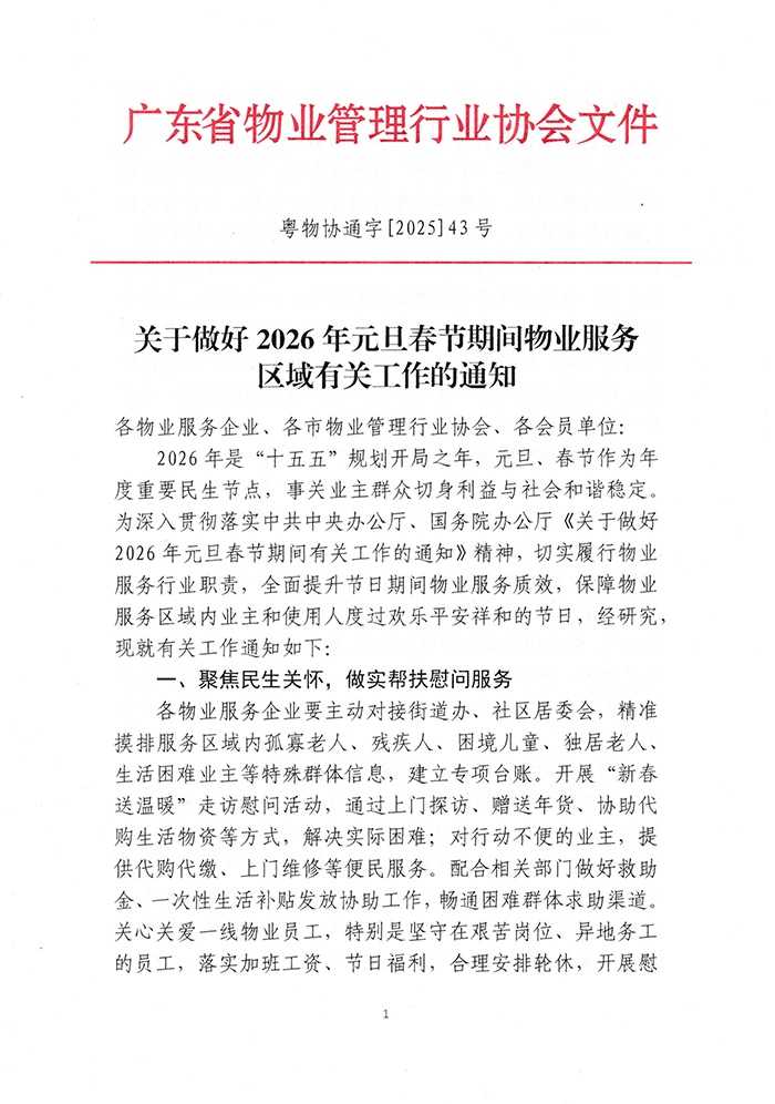 关于做好2026年元旦春节期间物业服务区域有关工作的通知