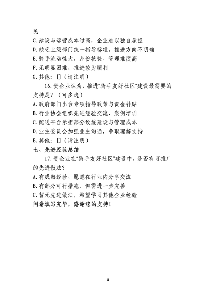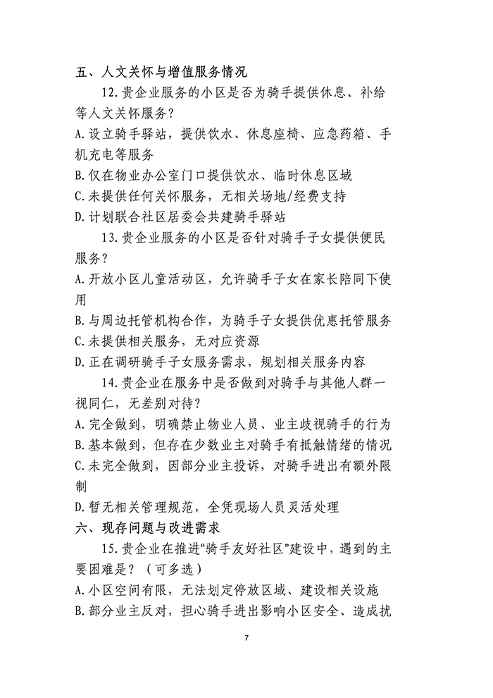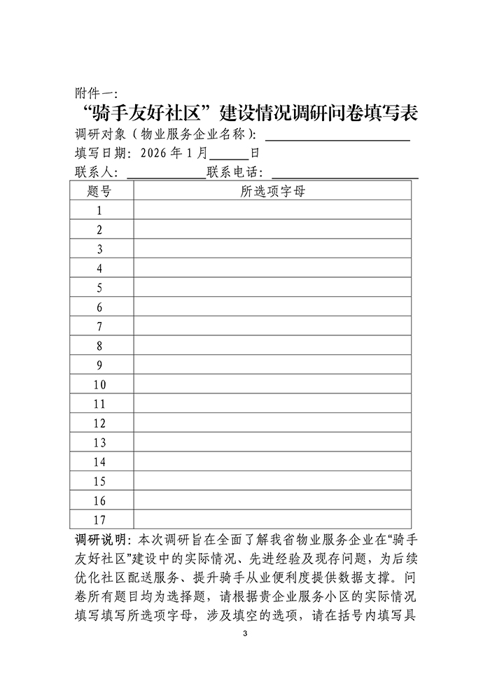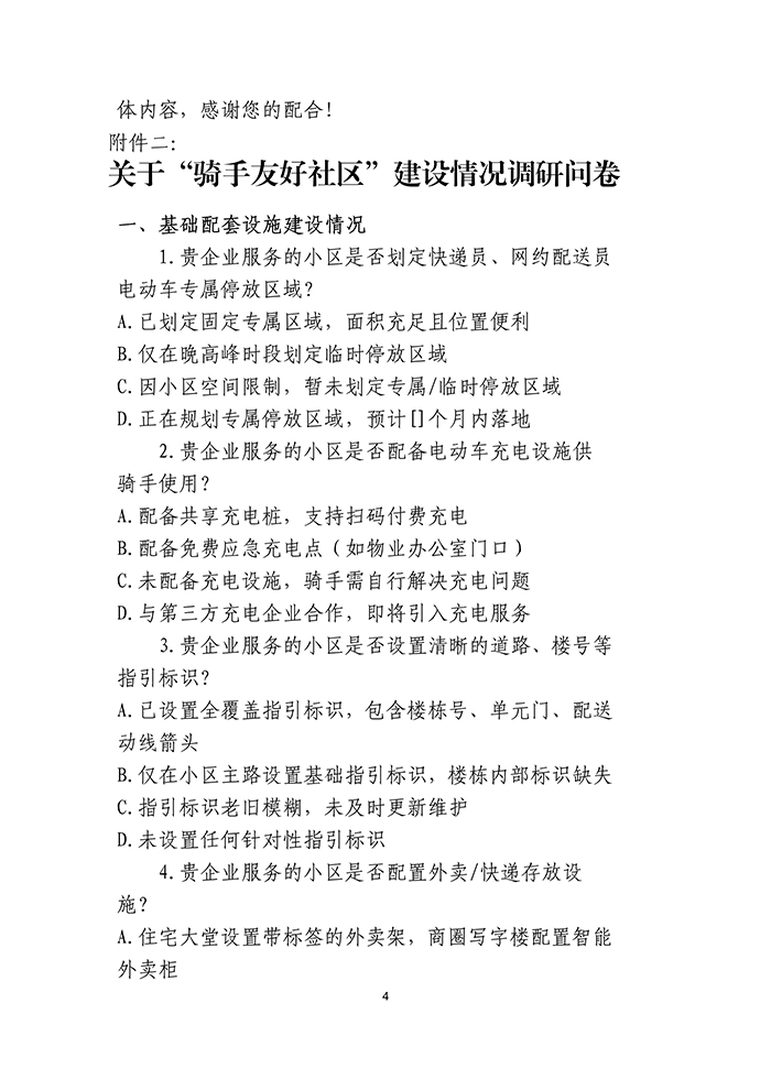 关于开展“骑手友好社区”建设情况调研的通知