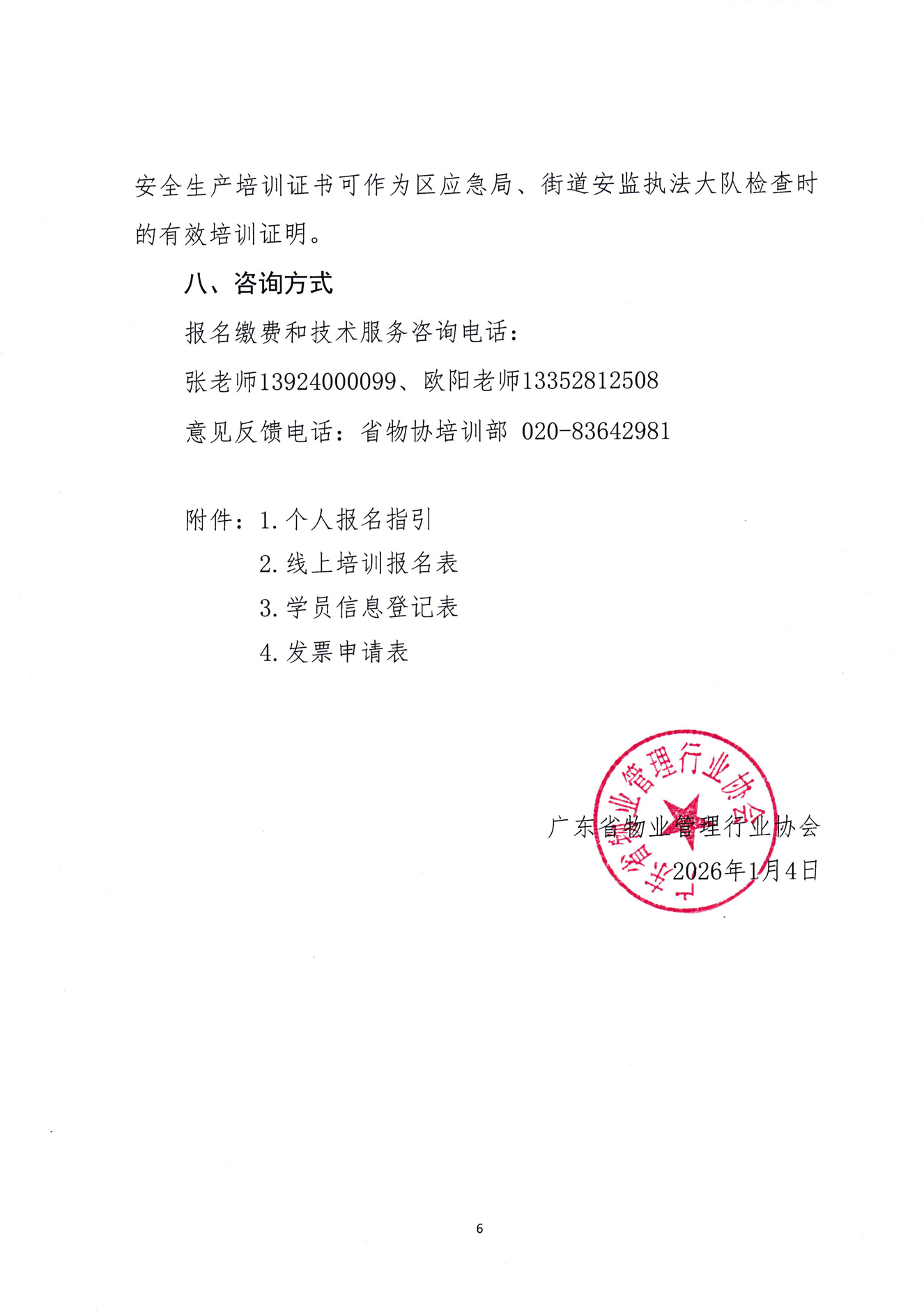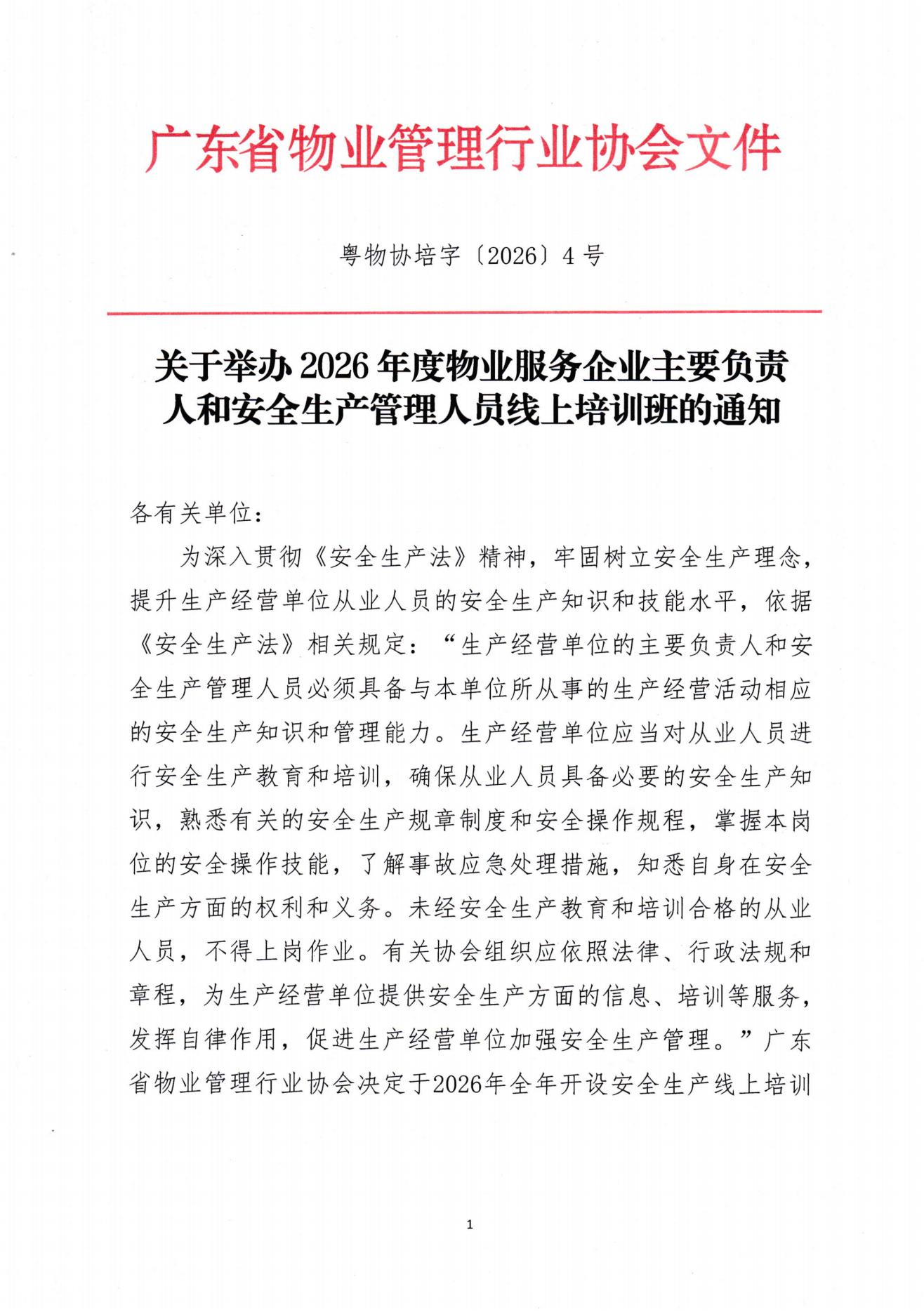 通知及附件下载:关于举办2026年度物业服务企业主要负责人和安全生产管理人员线上培训班的通知